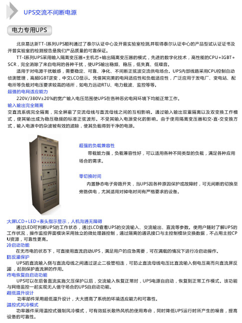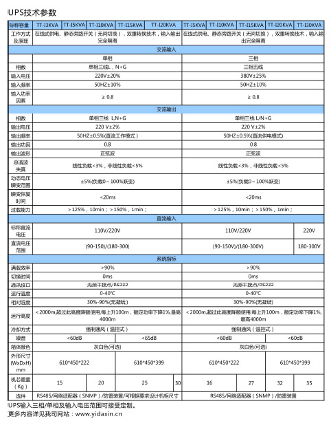 易達(dá)新TT-I系列交流不間斷電源覆蓋單進(jìn)單出/三進(jìn)單出/三進(jìn)三出容量1KVA到400KVA全系列規(guī)格。其顯著的優(yōu)勢(shì)如下: